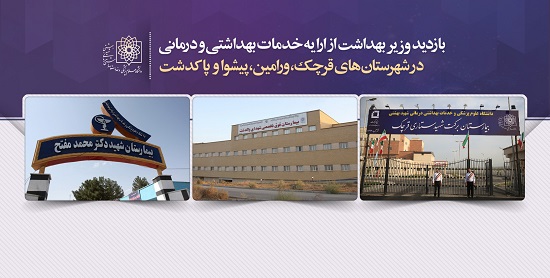 در سفر یک روزه وزیر بهداشت، درمان و آموزش پزشکی به همراه رییس دانشگاه علوم پزشکی شهید بهشتی به جنوب استان تهران؛ روند ارایه خدمات بهداشتی درمانی در شهرستان های ورامین، پاکدشت، قرچک و پیشوا بررسی شد