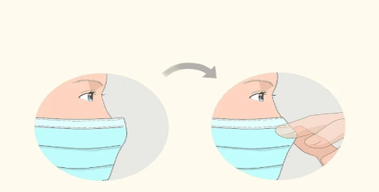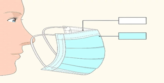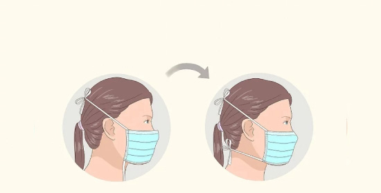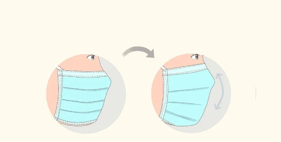 از طرف مناسب ماسک به سمت بیرون اطمینان حاصل کنید، قسمت داخلی بیشتر ماسک های پزشکی به رنگ سفید است در حالی که قسمت بیرونی رنگ دارد. قبل از استفاده از ماسک بر روی صورت خود، اطمینان حاصل کنید که قسمت سفید ماسک به سمت صورت شما باشد.